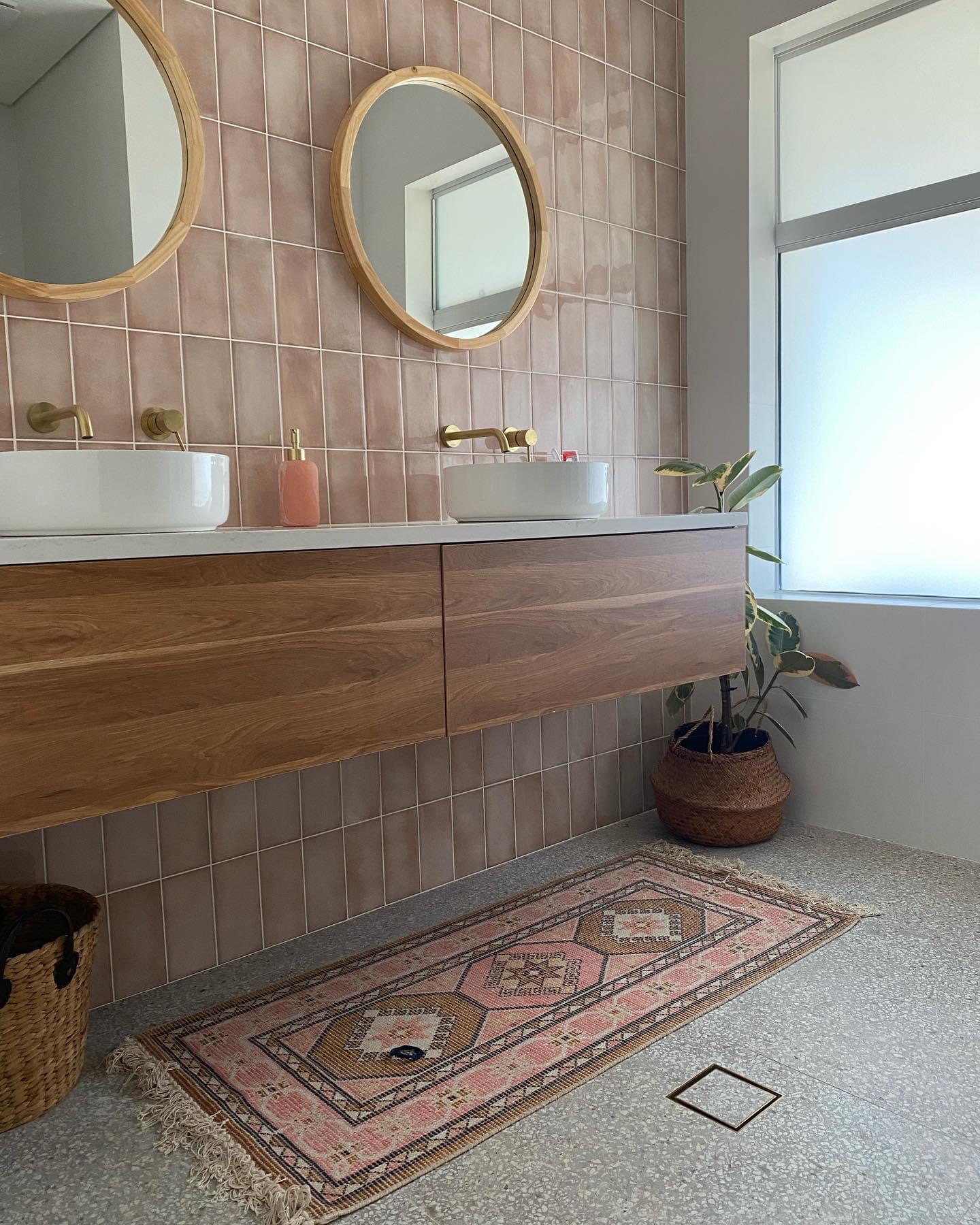 Large-format porcelain tiles (typically 1200mm x 600mm) are used throughout for their durability and ease of cleaning. Fewer grout lines mean less upkeep, and the surface stays looking good for longer.